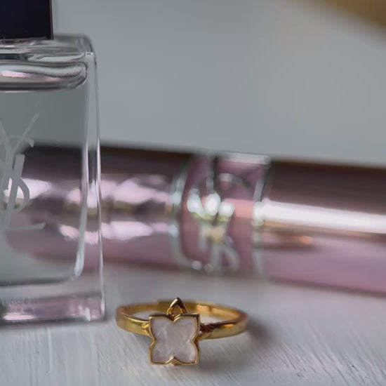 The ring can be worn on any finger and allows you to engage with the subtle vibration of the spin and watch as the pearl/stone/flower spins, providing a tactile and sensory outlet for anxiety or nervous energy.